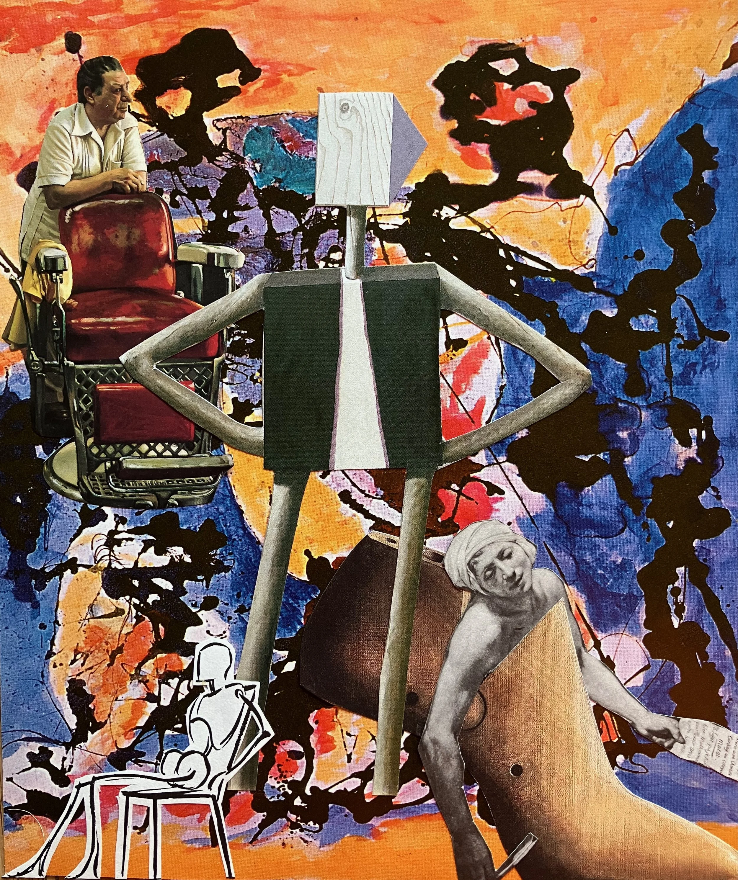 The barber waits, leaning on the back